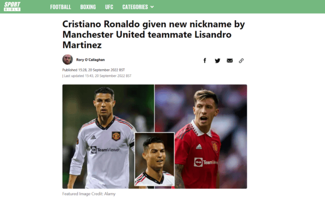 Por ejemplo,Sports Bible, reconocido medio británico, tituló: “Ronaldo recibió un nuevo apodo por parte de su compañero de equipo del Manchester United, Lisandro Martínez”. Por más que allá no lo sepan, cabe recordar que ese sobrenombre está lejos de ser una novedad, ya quese lo puso el relatorespañol Manolo Lama en su paso por el Real Madrid.