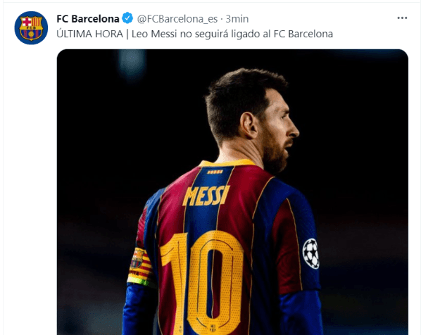 Y sigue: “Ante esta situación, Lionel Messi no continuará ligado al FC Barcelona. Las dos partes lamentan profundamente que finalmente no se puedan cumplir los deseos tanto del jugador como del Club”.