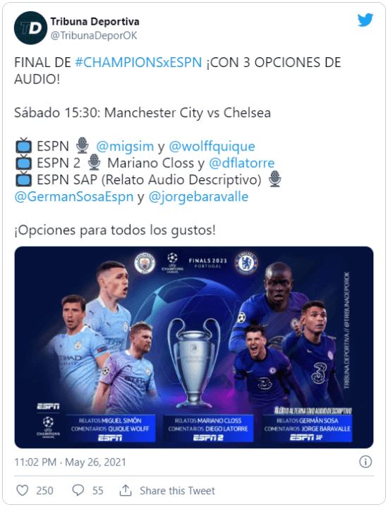 Finalmente, la cuenta especializada Tribuna Deportiva reveló que las autoridades de la empresa estadounidense tomaron una decisión que sorprendió felizmente a todos, ya que le darán la posibilidad al público de elegir a quién escuchar. Miguel Simón, junto a Quique Wolff, estará en la pantalla de ESPN; mientras que la dupla Closs-Latorre estará en ESPN 2.