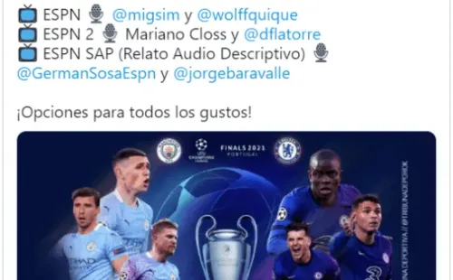 Hace no muchos años, cuando Closs estaba en FOX Sports, cada uno tenía sus prioridades en sus respectivas señales. Hoy, como compañeros, había mucha incertidumbre por saber quién iba a relatar la gran final entre Manchester City y Chelsea, teniendo en cuenta que ambos venían repartiéndose las instancias previas del torneo.