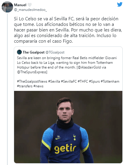 El interesado en contratar a Giovani es el Sevilla, según indicó el medioThe Spurs Express. El regreso del futbolista argentino a España podría llegar a darse en un problemático contexto, ya que Lo Celso supo vestiro los colores del Betis hace no mucho tiempo y los hinchas del Verdiblanco no se tomaron para nada bien los reportes.
