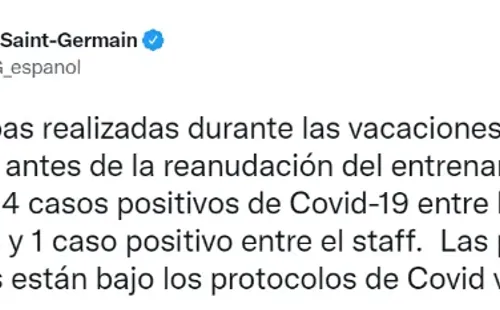 A pesar de que no se han develado los nombres de aquellos que se han contagiado, desde la cuenta oficial en español del equipo parisino afirmaron que “las pruebas realizadas durante las vacaciones de invierno y antes de la reanudación del entrenamiento revelaron 4 casos positivos de COVID-19 entre los jugadores y 1 caso positivo entre el staff”.