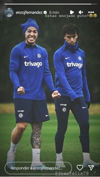 Pese a que claramente tuvo un fin amistoso, Enzo Fernández le dedicó una historia a Joao Felix en donde le pregunta: “¿Estas enojado put…?” que lo pondría en el enojo de la tormenta por las estrictas reglas que tiene la Federación Inglesa de fútbol en cuanto a los términos ofensivos, racistas u homofóbicos dentro de su fútbol.
