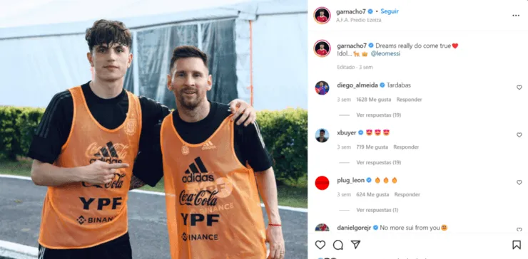 Garnacho compartió las imágenes con CR7 y se despachó con una llamativa frase.“El más grande de todos los tiempos”, fue lo que escribió el jovencito, posicionando al portugués por encima de Leo Messi y Diego Armando Maradona.