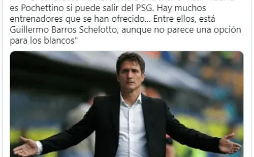 El periodistaPablo Parra, quien se encarga de cubrir la actualidad de muchos equipos europeos, aseguró en Radio Marca que el ex director técnico de Boca fue ofrecido al club: “El candidato número uno a entrenar al Real Madrid es Pochettino si puede salir del PSG. Hay muchos entrenadores que se han ofrecido… Entre ellos, está Guillermo Barros Schelotto”.