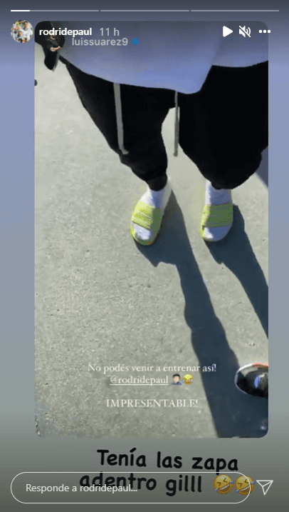 Esto quedó demostrado una vez más en Instagram esta mañana, donde entre ambos se estuvieron chicaneando, siendo el uruguayo el primero en comenzar. Resulta que RDP llegó a los entrenamientos del Atlético Madrid vestido con unas sandalias amarillas flúo, situación que el Pistolero no dudó en retratar acompañando a las imágenes de un texto que decía: “No podés venir a entrenar así! IMPRESENTABLE“, junto a unos emojis de risa. Obviamente, De Paul se lo devolvió reposteando el video y añadiendo”Tenía las zapas adentro, gil“, también con unos emoticones de risa. ¡Qué personajes!
