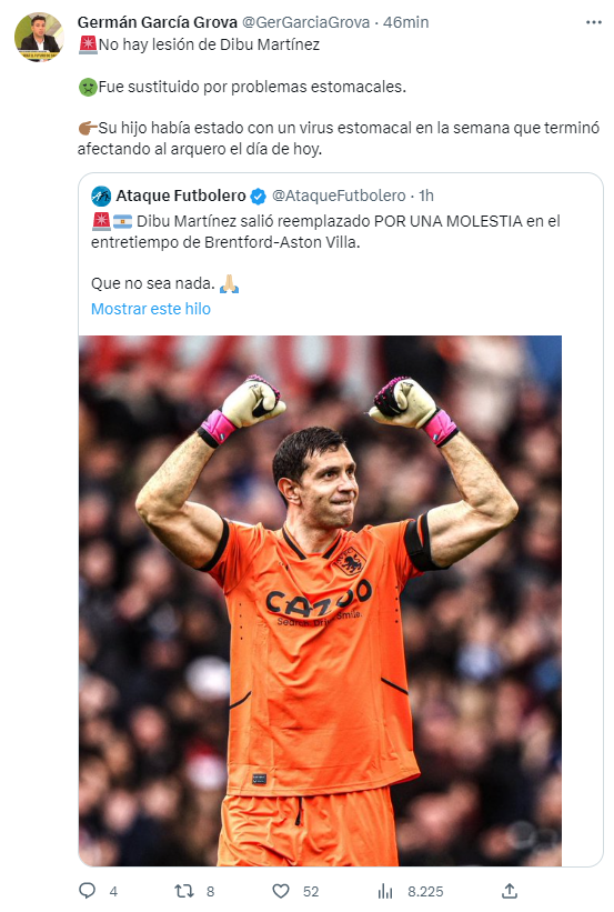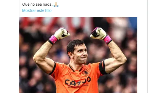 Cuando Emiliano Martínez nos deleitaba con otra de sus funciones con el Aston Villa en la Premier League, todas las alarmas se encendieron. El arquero argentino pidió el cambio y no salió a jugar el segundo tiempo contra el Brentford, lo que preocupó a todos tanto en Inglaterra como en Argentina.