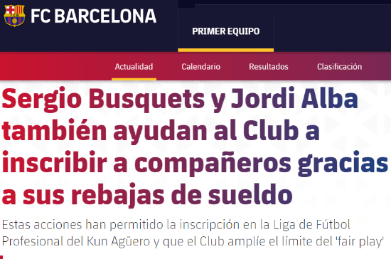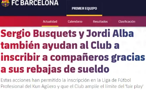 Finalmente, Barcelona emitió un comunicado en la jornada de ayer (último día para fichar) avisando que Agüero pudo ser inscripto gracias a un gesto de Jordi Alba y Sergio Busquets, dos de los 4 capitanes que tiene Ronald Koeman (Piqué y Sergi Roberto son los otros).