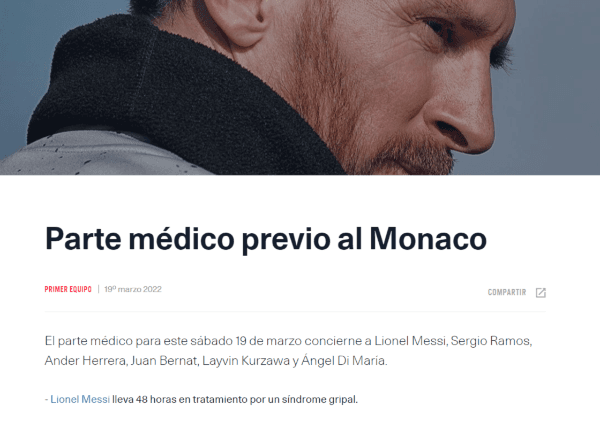 “Lionel Messilleva 48 horas en tratamiento por un síndrome gripal”, escribió el último campeón de la Ligue 1. Información que fue ratificada por Mauricio Pochettino y dejará al astro argentino afuera de la próxima convocatoria. Una lástima.