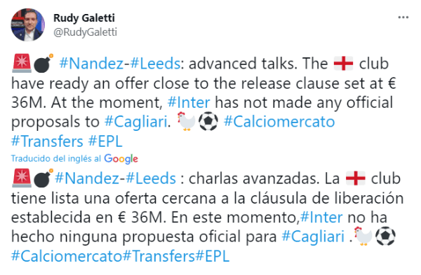 El actual futbolista de la Selección de Uruguay en la Copa América fue de los puntos más altos -si no el mejor- del Cagliari durante la última temporada y sus días en Italia parecen haber terminado, pese al rumor que había surgido de su llegada al Inter. La cláusula de rescisión de Nández es de 36 millones de euros y esa sería la oferta del Leeds para hacerse del volante, según contó el periodista italiano Rudy Galetti.