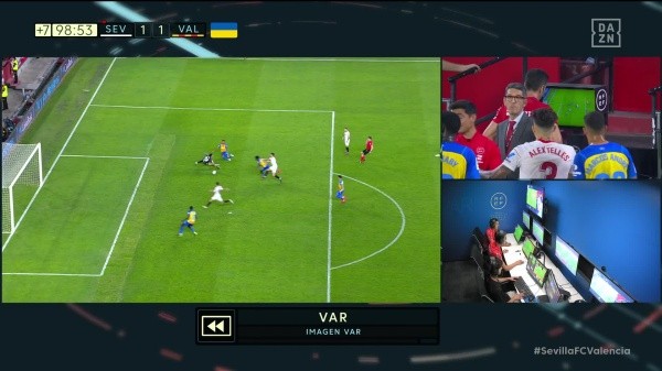 Debido al empujón del ex Ajax y AS Roma, Soto Grado se retractó en su decisión, le anuló la tarjeta roja al Papu Gómez y solamente lo amonestó. Pero sí terminó expulsando a Kike Salas, ya que se había otorgado la ley de ventaja, y sancionó penal para Valencia CF. Y para la fortuna de los andaluces, Bono tapó el disparo de José Gayá para que el encuentro finalice igualado. ¡Un final de película!