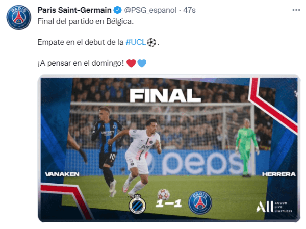 Brujas fue la gran sorpresa de la noche. El equipo dirigido porPhilippe Clement no salió a especular y presionó al Paris Saint-Germain por toda la cancha, generando los errores que se vieron en el campo de juego por parte de los parisinos. El capitánHans Vanaken fue el encargado de igualar el juego a los 27 minutos del primer tiempo para asegurar un punto más que valioso para el conjunto belga.