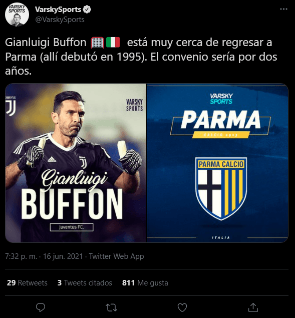 La fórmula Buffon-Parma fue un éxito porque durante la época 1995-2001 que sus caminos estaban unidos, el equipo logró 3 Copas Italia, una Supercoppa, dos subcampeonatos de la Serie A y dos Copas de la UEFA (actual Europa League). Y ahora parece todo cerrado para que el hijo pródigo vuelva a su casa.