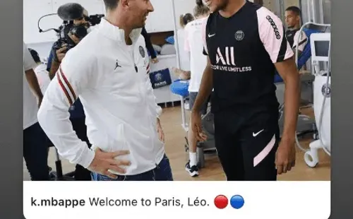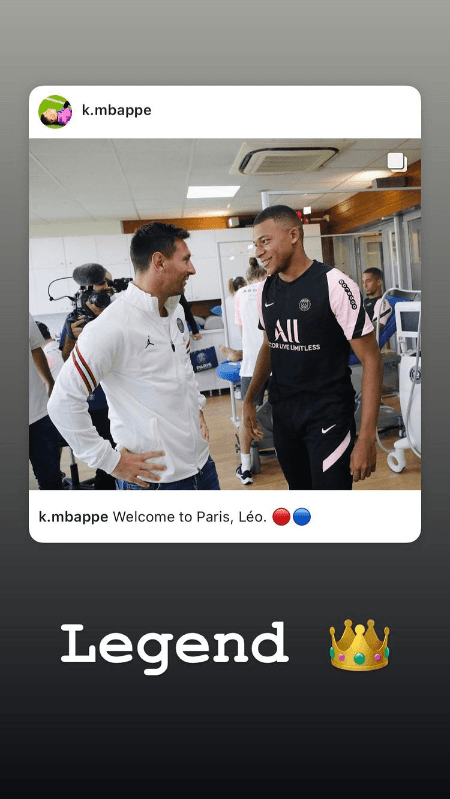 “Bienvenido a Paris, Leo”, escribió el veloz delantero del equipo parisino. Además, el galo incluyó cuatro imágenes que parecen ser del primer contacto que tuvieron en la práctica de hoy, con caras de alegría y hasta un abrazo de por medio. Además, en Instagram subió una historia diciéndole “leyenda”.