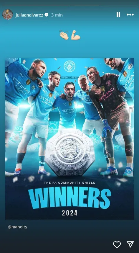 El cordobés reposteó la imagen que publicó el club inglés celebrando el primer título de la temporada. Pese a que ya no forma parte del plantel y que será presentado como refuerzo del Atlético de Madrid, Julián deja en claro que sigue alentando por el equipo que le abrió las puertas a la élite europea.
