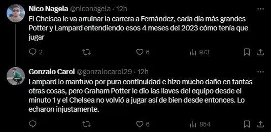 El usuario @gonzalocarol29 expuso en su cuenta de X (ex Twitter) un video de un intento de acción ofensiva en el que la defensa de Chelsea avanza metros de manera apática y erra un pase raso con el que intentaba romper líneas. Lo que más llamó la atención de la jugada era la posición que Enzo Maresca le asignó a Enzo Fernández.
