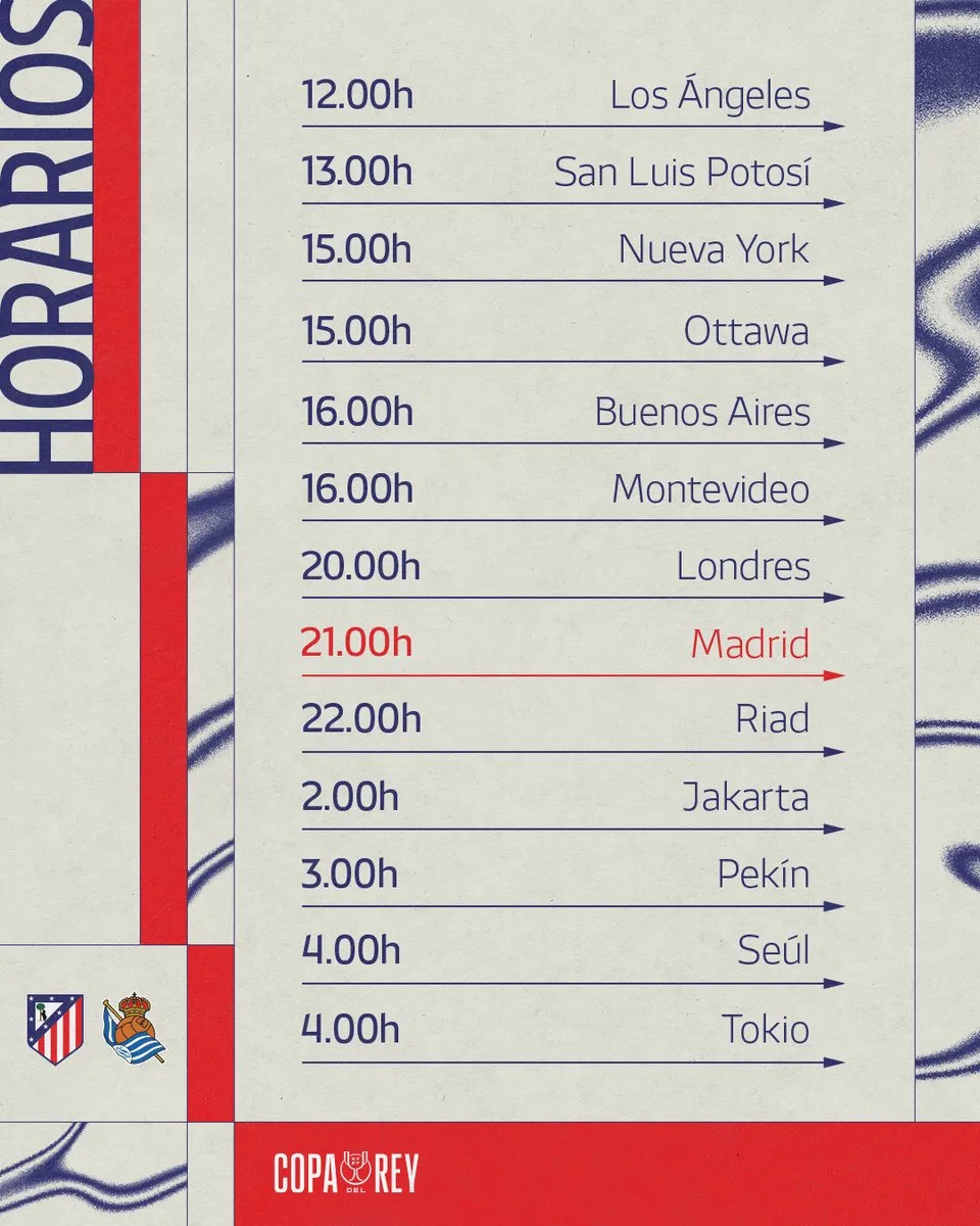La final de la Copa del Rey que protagonizarán Atlético de Madrid y Real Sociedad en el Estadio de La Cartuja tiene horario de inicio programado para las 16.00 de Argentina y podrá verse en vivo y en directo por Flow Sports. En España, la transmisión estará a cargo de Movistar Eventos. Además, el streamer español Ibai Llanos transmitirá en vivo desde el estadio y de manera gratuita a través de su canal de Youtube.