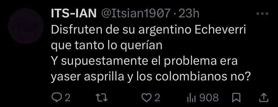 El volante argentino había ingresado en el entretiempo y con la ventaja a favor en el marcador. Cuando la victoria parecía un hecho, Echeverri tomó la pelota en campo propio, con el reloj marcando el tiempo agregado, y se resbaló al intentar regatear. Atento a la situación, Kike Salas tomó la posesión y no perdonó al sacar un zurdazo desde lejos que decretó el 1-1 definitivo.