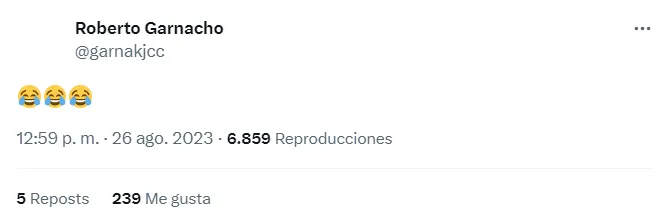 Al finalizar el encuentro, el hermano de Garnacho, que cuenta con casi 20 mil seguidores en Twitter, se despachó con unos emojis de risa. Si bien no se sabe si fue una ironía o una simple reacción al partido, su comentario no pasó desapercibido.