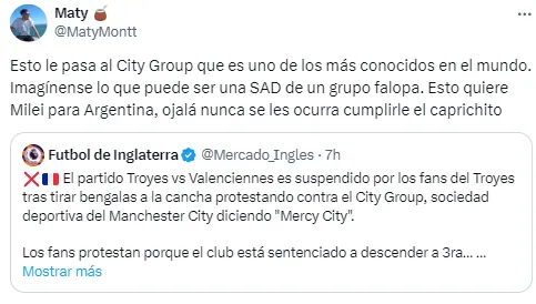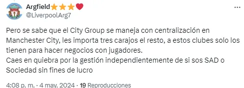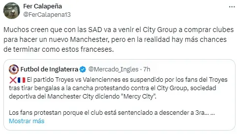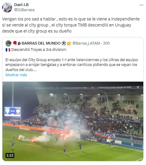 Enfocado en Argentina, otro usuario pronosticó: “Esto es lo que se le viene a Independiente si se vende al City Group“. Y sumó otro ejemplo: “El Torque también descendió en Uruguay“.