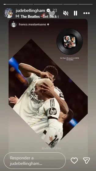 Esto no es casualidad, ya que ambos reconocieron en otras oportunidades ser fanáticos del rock, algo que los une. Incluso, en una historia de este miércoles, el propio Mastantuono publicó una foto suya con Bellingham musicalizada con ‘Get Back’ precisamente de The Beatles.