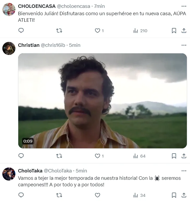 Los mensajes de los hinchas de Atlético de Madrid sobre el arribo de Julián