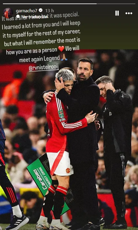 Ante la inminente llegada de Rúben Amorim, Ruud van Nistelrooy se despidió de Manchester United con un saldo más que positivo. El neerlandés terminó su interinato con 3 victorias, 1 empate y el respaldo de todo un plantel. Tal es así que Alejandro Garnacho salió a bancarlo en las redes sociales.