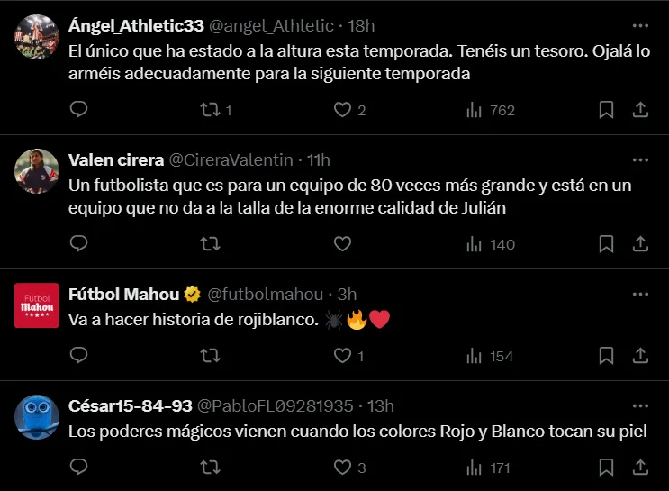 Rápidamente en los comentarios los hinchas del Atleti se acercaron no solo para elogiar a una de las figuras en esta temporada, sino que también para dejarle un claro pedido al club. El mismo es rodear al argentino de la mejor manera de cara al próximo curso, ya que tienen miedo de perderlo.