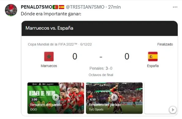 La conquista de la Selección Argentina en el último Mundial de Qatar reavivó la “pica” entre los hinchas de la Albiceleste y sus pares españoles, desde la derrota contra Arabia Saudita en la jornada inaugural hasta el partido clave en Lusail que determinó al campeón del mundo. En esta oportunidad, el detonante fue un posteo del reconocido periodista MisterChip.