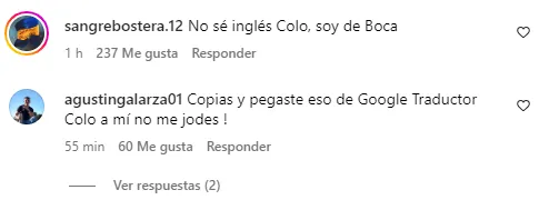 “Colo vos no escribiste eso“, disparó uno de ellos. Y otro bromeó: “Dale, Colo. ¿No ves que somos de Boca? Ponelo en español“. Otro hincha elevó un poco el tono y le dijo: “Jugaste en Boca y ahora hacés tus publicaciones en inglés, rescatate Colito“.