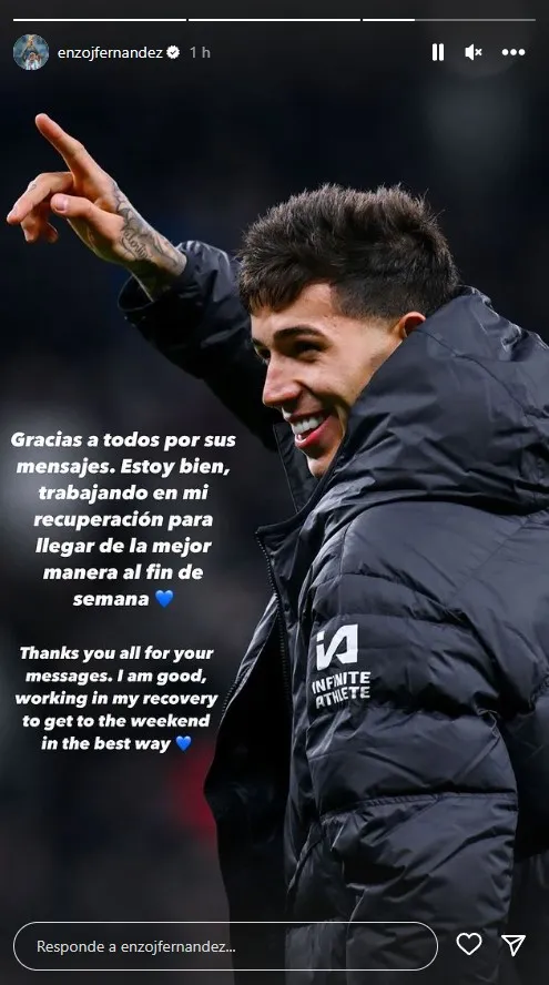 “Gracias a todos por sus mensajes. Estoy bien, trabajando en mi recuperación para llegar de la mejor manera el fin de semana”, escribió Enzo vía Instagram, ya con la cabeza puesta en el próximo partido de los Blues. ¿El rival a enfrentar? El Manchester City de Julián Álvarez.