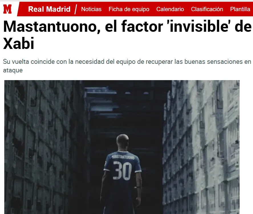 Además, Defensa Central, portal dedicado al día a día del elenco de la capital española, señaló: ”Xabi Alonso quiere que el argentino vuelva a entrar en dinámica tras superar la pubalgia, porque considera que mientras él estuvo en el campo, el equipo defendía mejor, el bloque era más compacto y la presión adelantada no solo se hacía mejor, sino que empujaba al resto del equipo a remangarse para lograrlo. El técnico quiere que Mastantuono sea el culpable de cambiar al Real Madrid de los tres empates fuera de casa”.