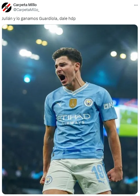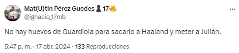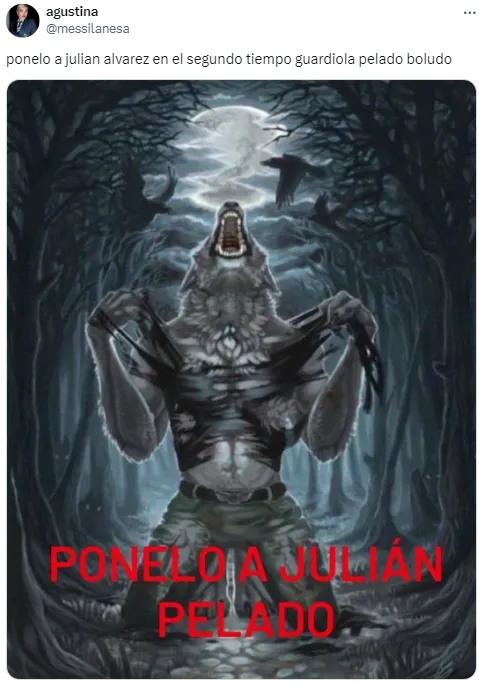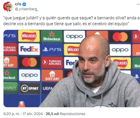 En el desarrollo, y mientras más minutos pasaban, los usuarios de la redes atacaron al entrenador español por mantener a Julián en el banco de suplentes. Un centenar de memes y de insultos para Pep inundaron Internet antes de que decidiera utilizarlo en el tiempo suplementario en lugar de Erling Haaland.