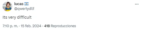 A pesar de que fueron sus primeras palabras y que no lleva ni 24 horas en Inglaterra, los usuarios de X tiraron algunos chistes y lo compararon con Carlos Tevez y su famoso ‘It’s very difficult‘.