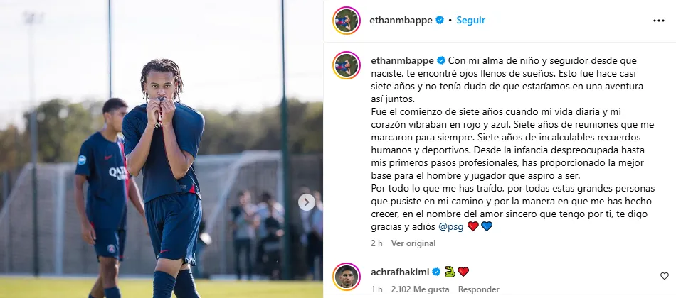 La carta despedida de Ethan Mbappé en PSG