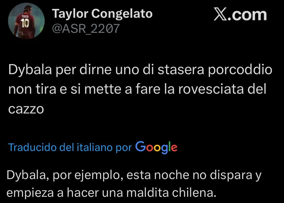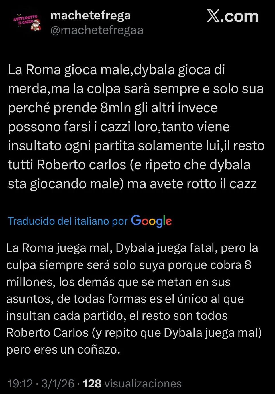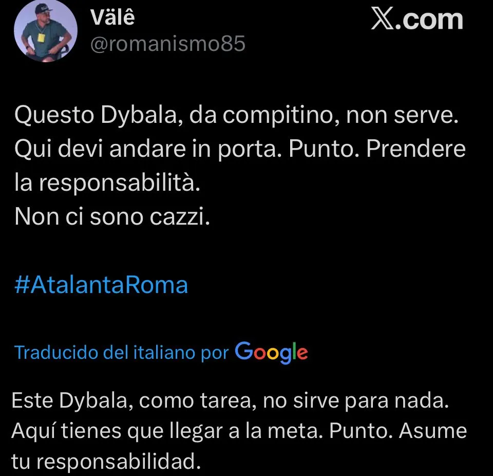 El sábado de la Roma se tiñó de frustración. En un duelo clave, la Loba cayó 1-0 ante Atalanta y desperdició la chance de convertirse en el único escolta del Milan, líder de la Serie A. Con Paulo Dybala y Matías Soulé desde el arranque, el conjunto capitalino no encontró los caminos, pero el descontento de los hinchas no apuntó solo al funcionamiento colectivo, sino que dejó en el centro a la Joya, quien quedó marcado por una decisión desafortunada.