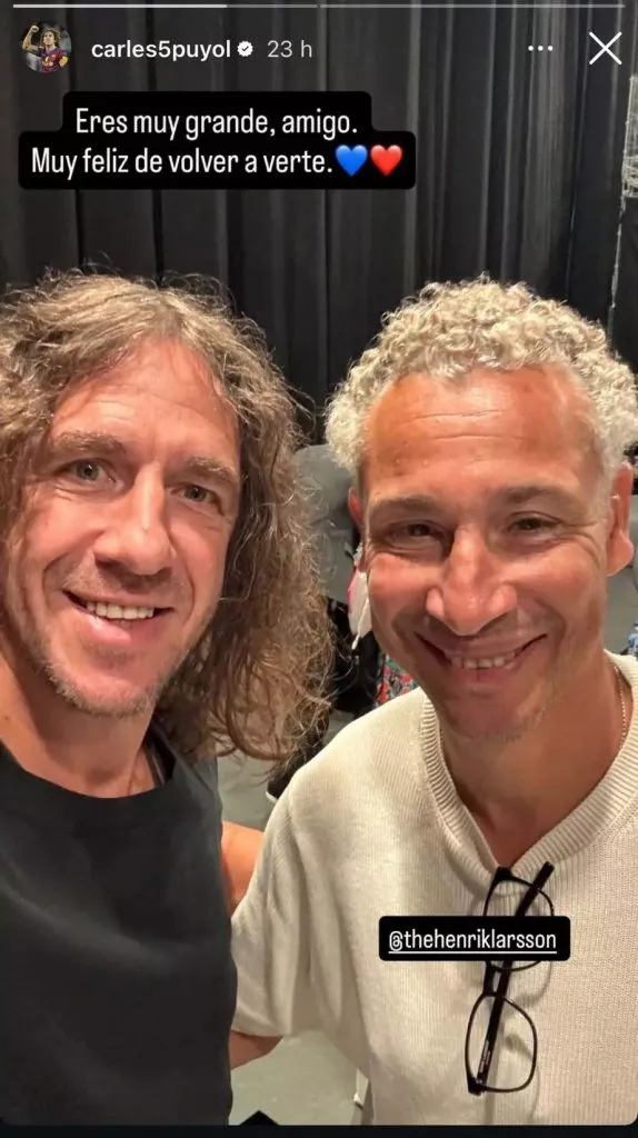 Pero atrás quedaron esos peinados. Es que Carles Puyol compartió una historia junto a Larsson en la recordaron sus tiempos en Barcelona. “Eres muy grande amigo, muy feliz de volver a verte”, escribió el capitán sobre su reencuentro con el sueco.