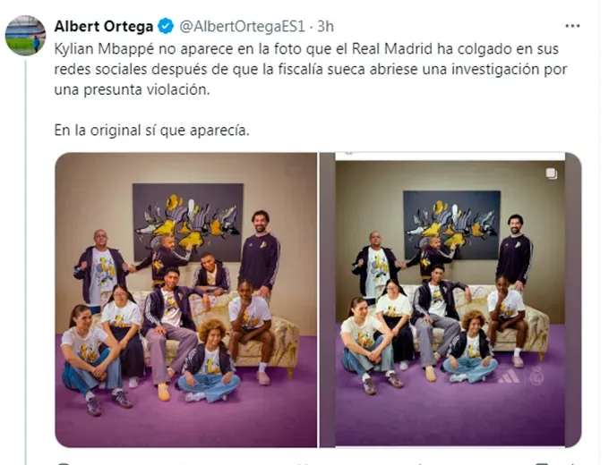 La prensa española tomó nota este martes de una foto que publicó Real Madrid en sus redes sociales oficiales con motivo del lanzamiento de una nueva línea de ropa presentada por la marca alemana que lo viste con motivo de una campaña compartida con la Fundación solidaria del club. Según imágenes que se divulgaron en las redes sociales, la foto original contaba con Kylian Mbappé en la escena, aunque fue borrado en la que finalmente publicó el club.