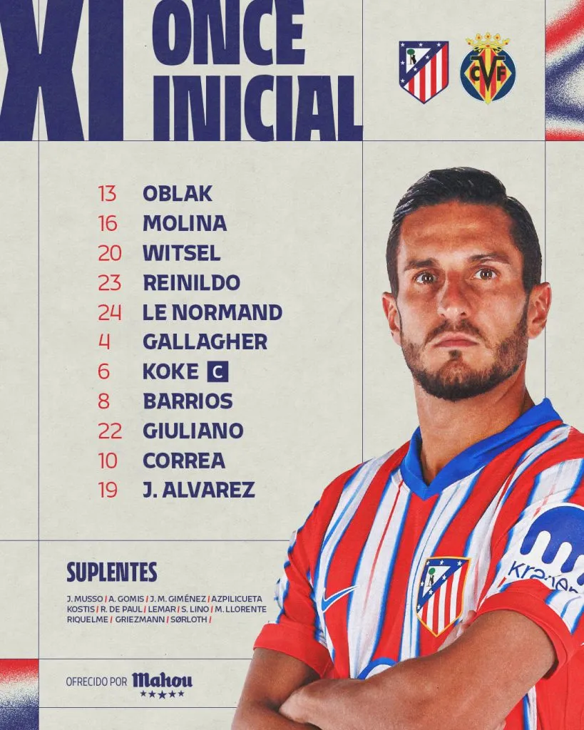 Por el contrario, Julián Álvarez será titular en el conjunto de la capital española, y será uno de los cuatro argentinos que irán desde el arranque. Lo acompañarán en el ataque Ángel Correa y Giuliano Simeone, mientras que Nahuel Molina ocupará el lateral derecho de la defensa.