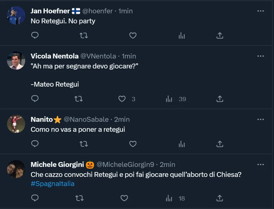 Como se daba el retorno de Ciro Immobile, el entrenador de la Azzurri había decidido que el delantero argentino nacionalizado italiano debía esperar entre los relevos. Pero los hinchas se mostraron muy enojados porque no tuvo acción para revertir el resultado.