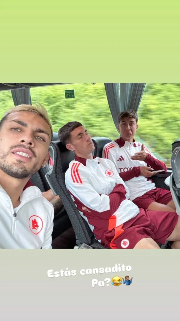 “Estás cansadito pa?”, fue la frase, acompañándola con una fotografía del refuerzo de la Roma en este mercado de pases completamente dormido en un viaje en micro. A su vez, se puede ver a Dybala y Paredes poniendo caras muy disparatadas.