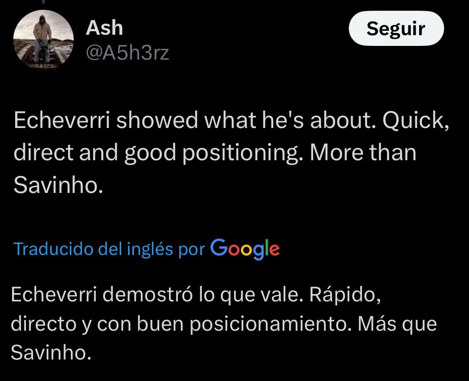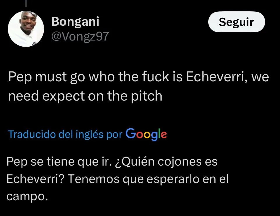 A través de las redes sociales, los aficionados del Manchester City opinaron acerca del debut de Echeverri cuando la cuenta oficial del club anunció su ingreso en el campo. Y teniendo en cuenta el resultado del encuentro, varios usuarios no se mostraron convencidos con el cambio, mientras que otros decidieron ponerle una fichita de confianza.