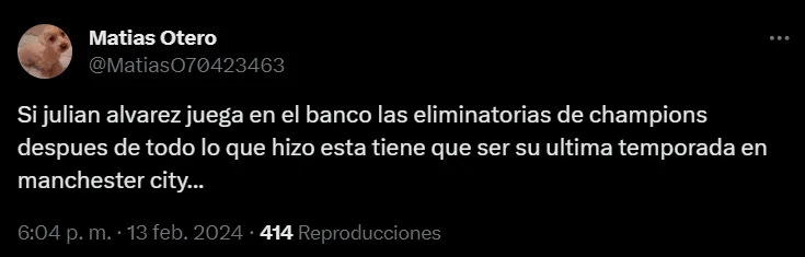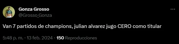 Igualmente, las críticas para Guardiola no demoraron en llegar pese al triunfo de Manchester City. Es que, una vez más, el destacado director técnico español tomó la decisión de dejar a Julián Álvarez en el banco de los suplentes. Pero no solamente no fue titular sino que no lo colocó en el verde césped ni un minuto. Un tanto polémico.