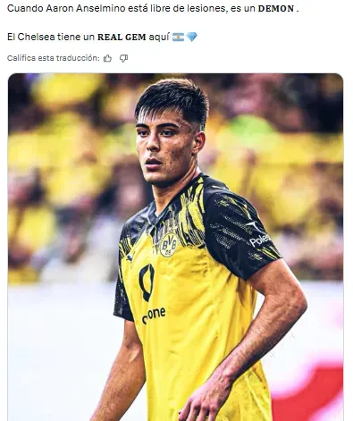Con apenas 20 años, el pampeano ya demuestra su talento en los principales escenarios del viejo continente. Para foguearse, los Blues lo enviaron a préstamo a Borussia Dortmund por una temporada y en Alemania ya admiran lo que Anselmino puede hacer.