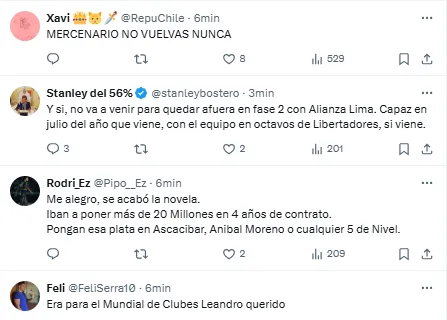 Tras conocerse la noticia, oficializada por las vías oficiales de la Loba, los hinchas del Xeneize estallaron de bronca en redes sociales y le dedicaron mensajes de reproche al mediocampista de la Selección Argentina por no haber vuelto al club para disputar el Mundial de Clubes.