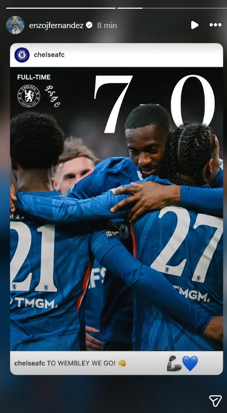 La forma en que el DT minimizó las expresiones de Javier Pastore podrían tensar todavía más la relación con Enzo Fernández, quien apenas finalizado el partido se había mostrado conciliador desde sus redes sociales, celebrando la victoria del equipo en su ausencia. “¡A Wembley vamos!”, escribió en una historia de Instagram haciendo referencia al estadio que será cede de la final de la FA Cup.