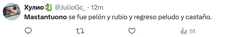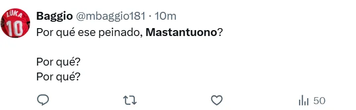 El motivo de la tendencia fue su radical cambio de look. Desde su llegada a la Casa Blanca, Mastantuono se había caracterizado por lucir un corte rapado y teñido de platinado. No obstante, durante su período de rehabilitación, dejó crecer su cabellera y se presentó con un peinado más largo y de color castaño. Un contraste visual que despertó el ingenio digital.