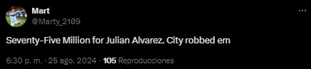 Sin embargo, también hubo lugar para la confianza y la paciencia. Varios usuarios destacaron que el equipo no le creó oportunidades al ex Manchester City, por el que pagaron 95 millones de euros, incluyendo variables.