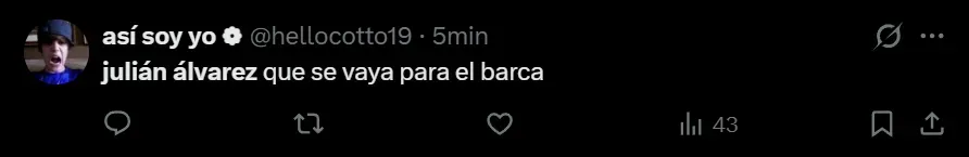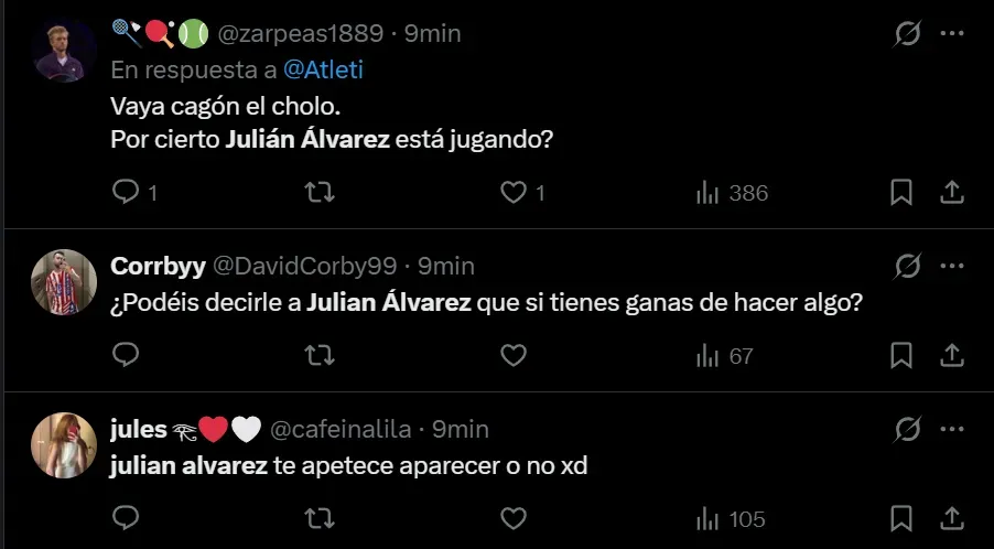Los hinchas del Colchonero fueron muy críticos con el rendimiento del cordobés nacido en Calchín, a quien tildaron de estar especulando con su futuro, ya que el Blaugrana pretende llevárselo de cara al próximo año. Si bien desde el cuadro madrileño no quieren negociarlo, Joan Laporta insiste por el ex Manchester City.