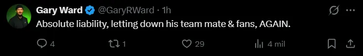 “Simplemente no necesita hacer eso. Es un lastre. Está en crisis de lesiones, luchando por no verse arrastrado a la lucha por el descenso, y lo hace, y ahora está de baja tres partidos. ¡Qué mal! Si quiere irse en verano, que así sea. Como capitán, no deberías estar haciendo eso“, se quejó un hincha de los Spurs apenas la cuenta oficial del club dio cuenta de la expulsión.